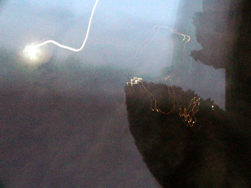 漆黒の闇に浮かぶ塔頭、飛び交う怪光
